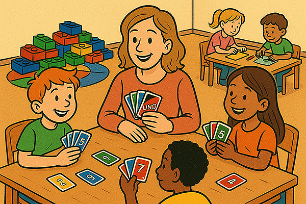 Die Mittagsbetreuung am Schulstandort Eibach unter der Leitung von Marion Klinger befindet sich in einem ehemaligen Klassenzimmer. Die Kinder werden hier schultäglich von einer pädagogischen Fachkraft und einer Hilfskraft vom Ende des stundenplanmäßigen Unterrichts nach Buchungsvereinbarung bis 13.55 Uhr betreut.